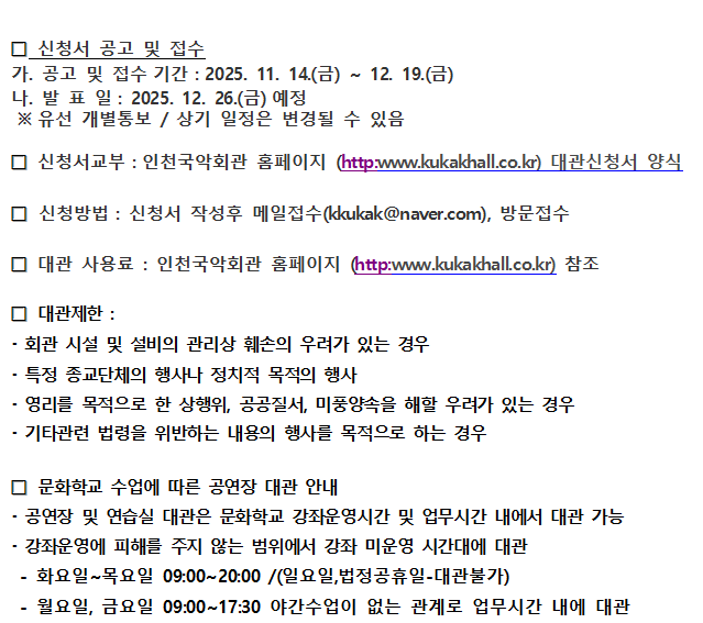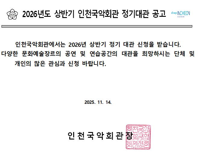 2025년 인천국악회관 국악문화학교 송년 발표회 개최 안내