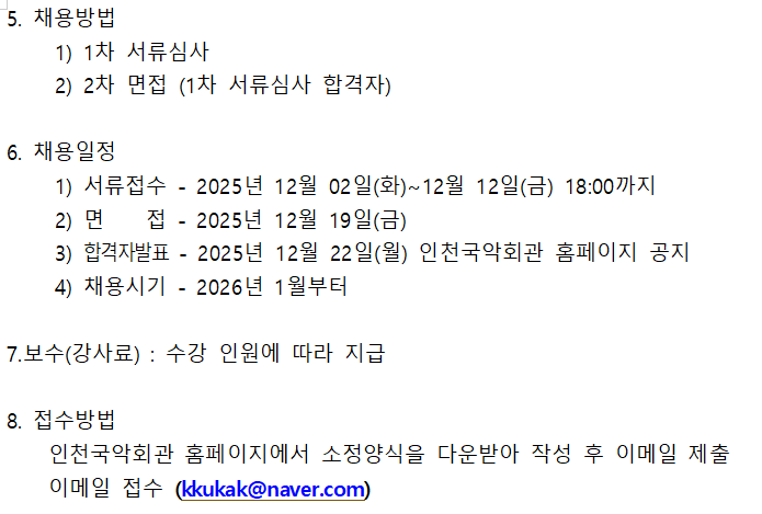 2026년 인천국악회관 국악문화학교 강사 채용 공고