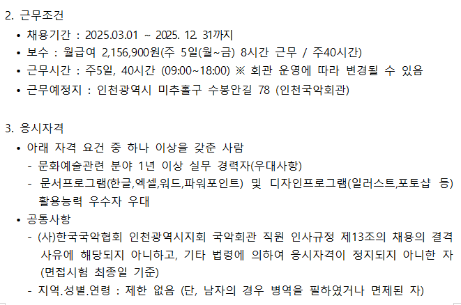 [채용공고] 인천국악회관 기간제 사원 채용 공고